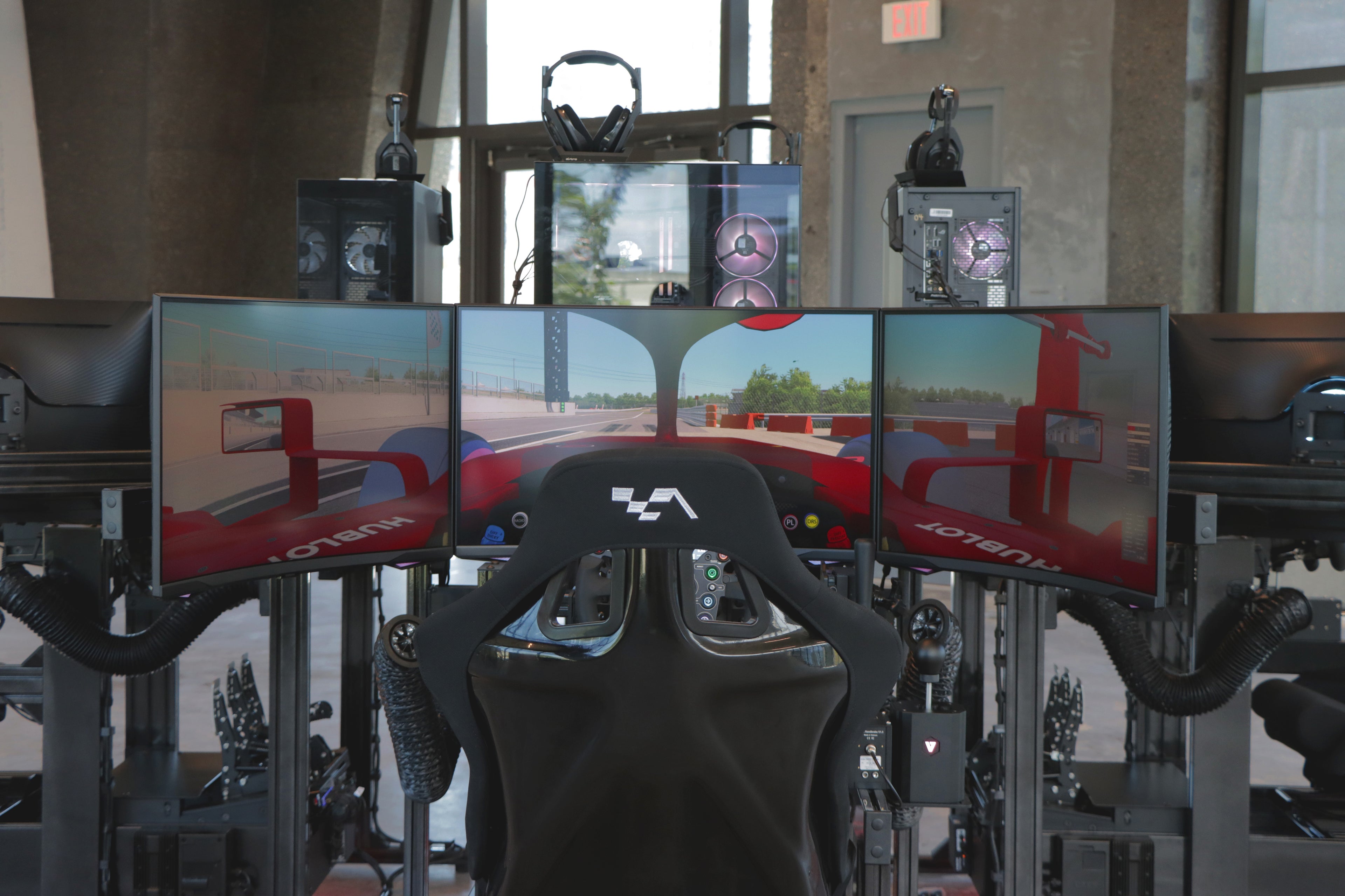 Our setup also includes 1440p curved triple screens and a hurricane kit, ensuring an expansive and visually stunning environment for racing. Furthermore, our hardware and software have been fine-tuned and calibrated by Formula 2 and ELMS drivers, as well as Assetto Corsa and iRacing champions, guaranteeing an authentic and exhilarating racing experience.